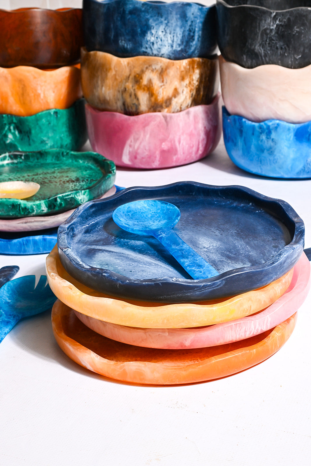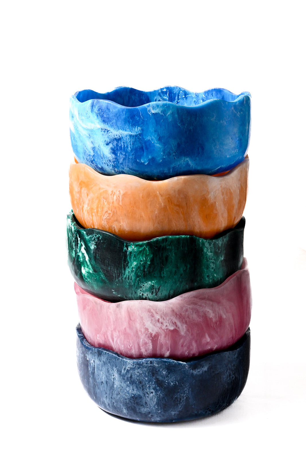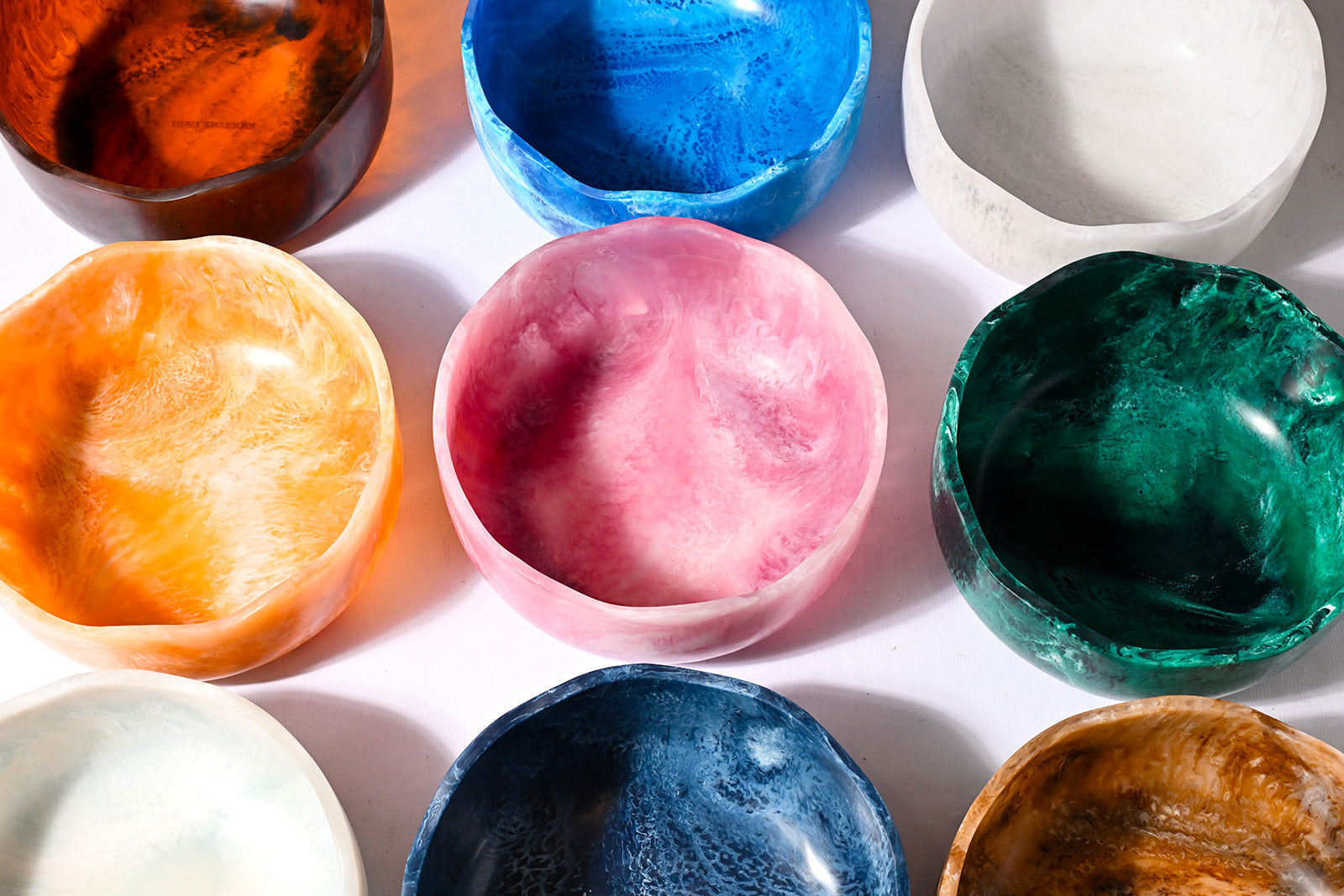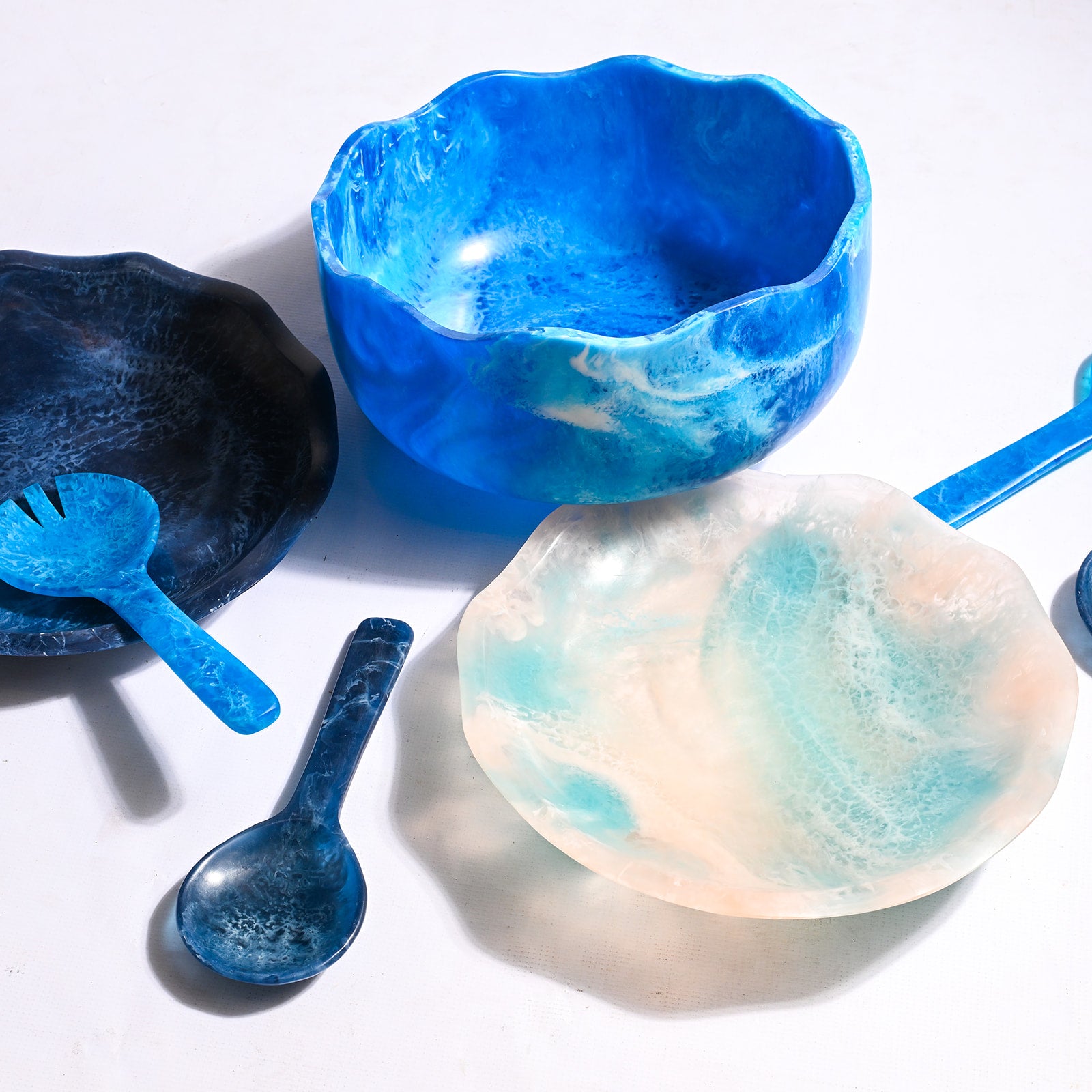 These vibrant resin bowls feature softly scalloped edges and a marbled finish that makes each one unique. Dishwasher safe and hot food safe, they’re perfect for serving everything from fresh salads to hearty pastas and warm side dishes.