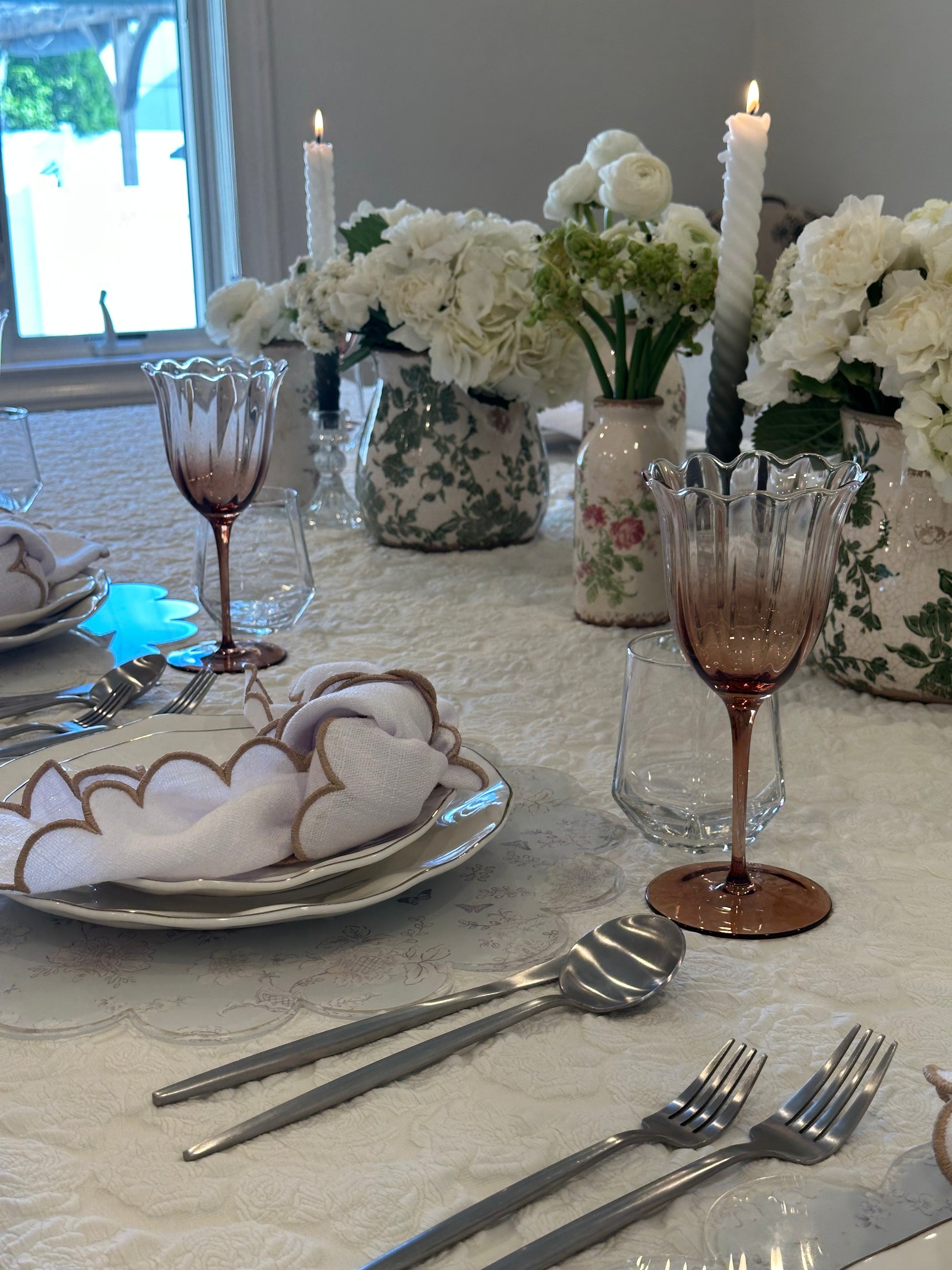 Crafted from premium linen, this napkin features delicately scalloped edges that add a touch of sophistication to any meal