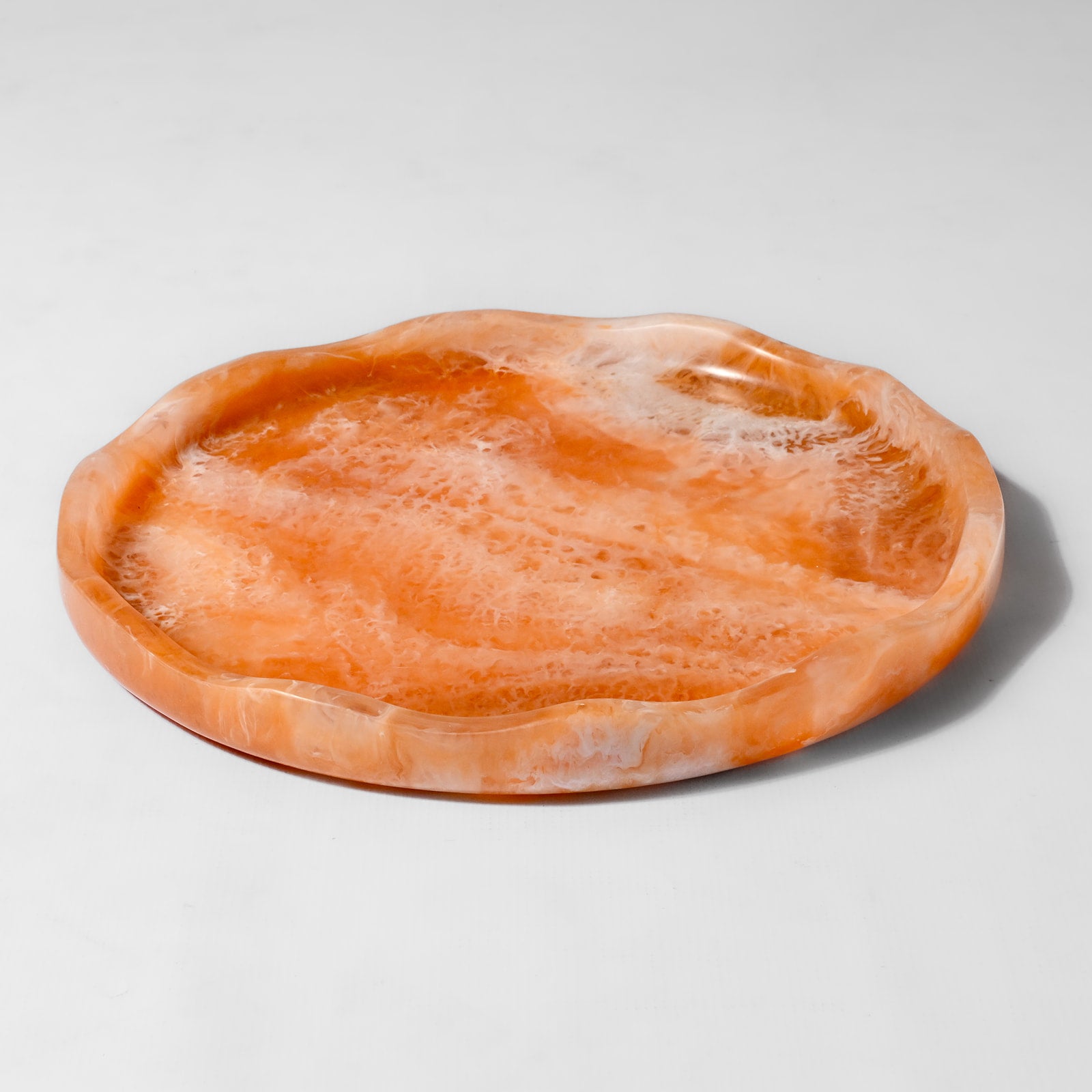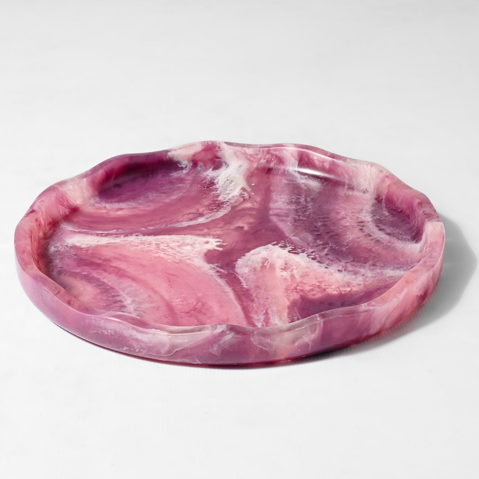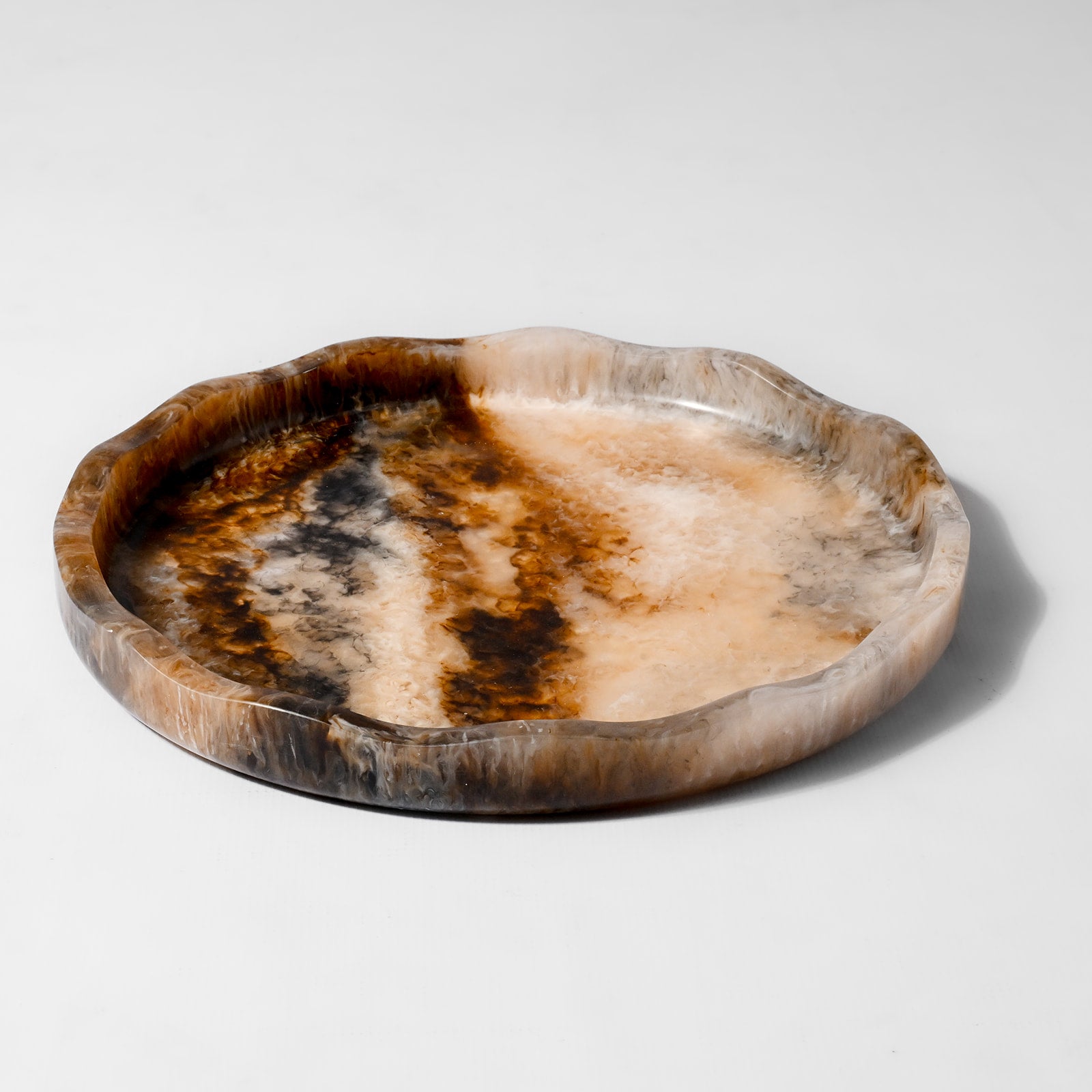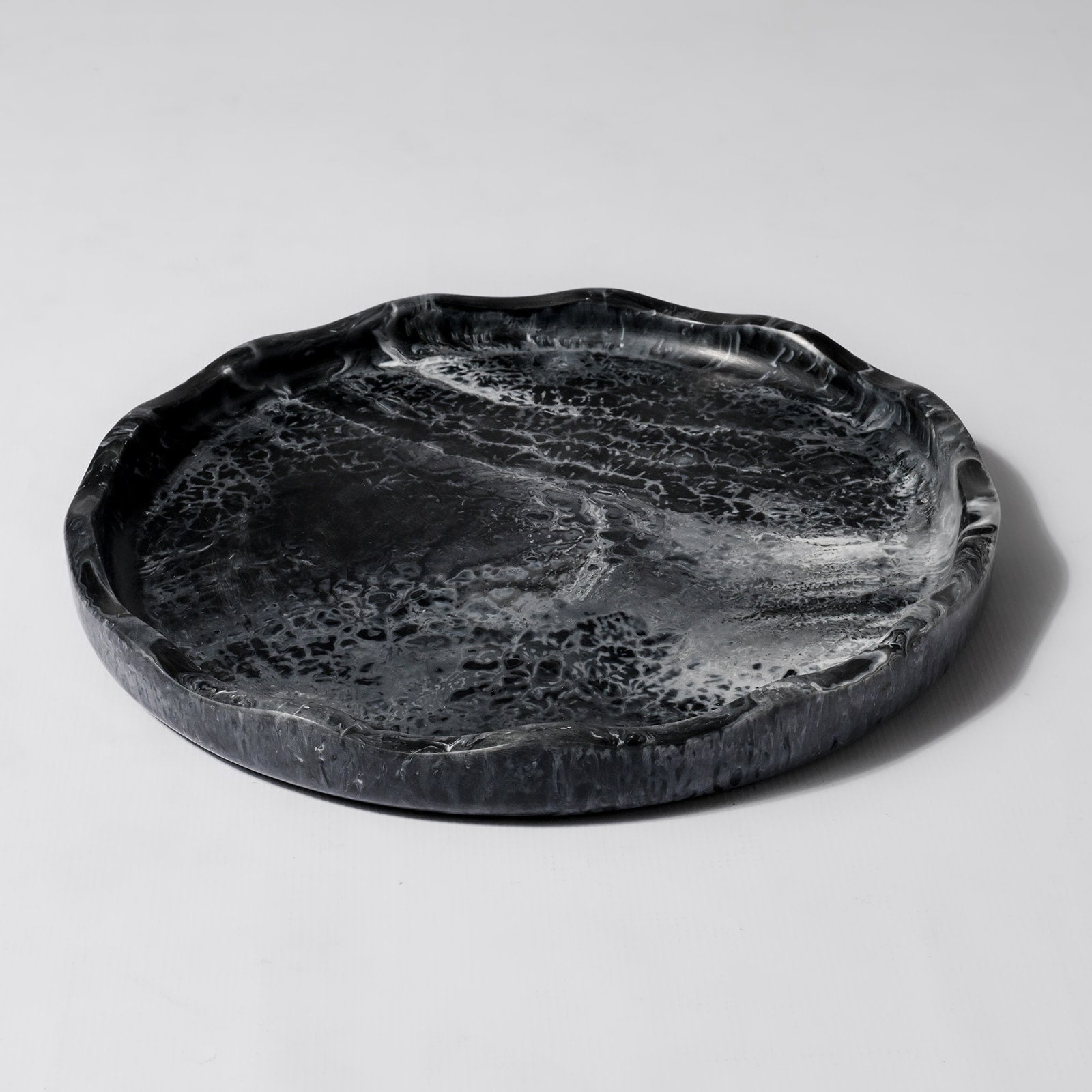 This flat tray has a smooth shape with gently rounded edges and a marbled resin finish that makes each one unique. Dishwasher safe and hot food safe, it’s perfect for serving appetizers, desserts, or as a stylish base for tabletop displays.