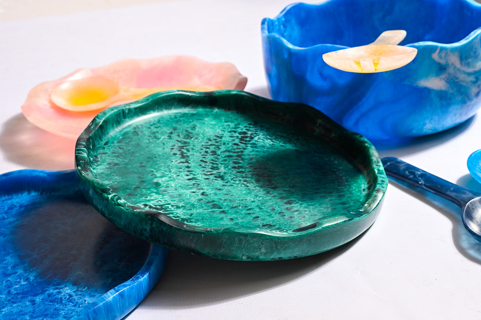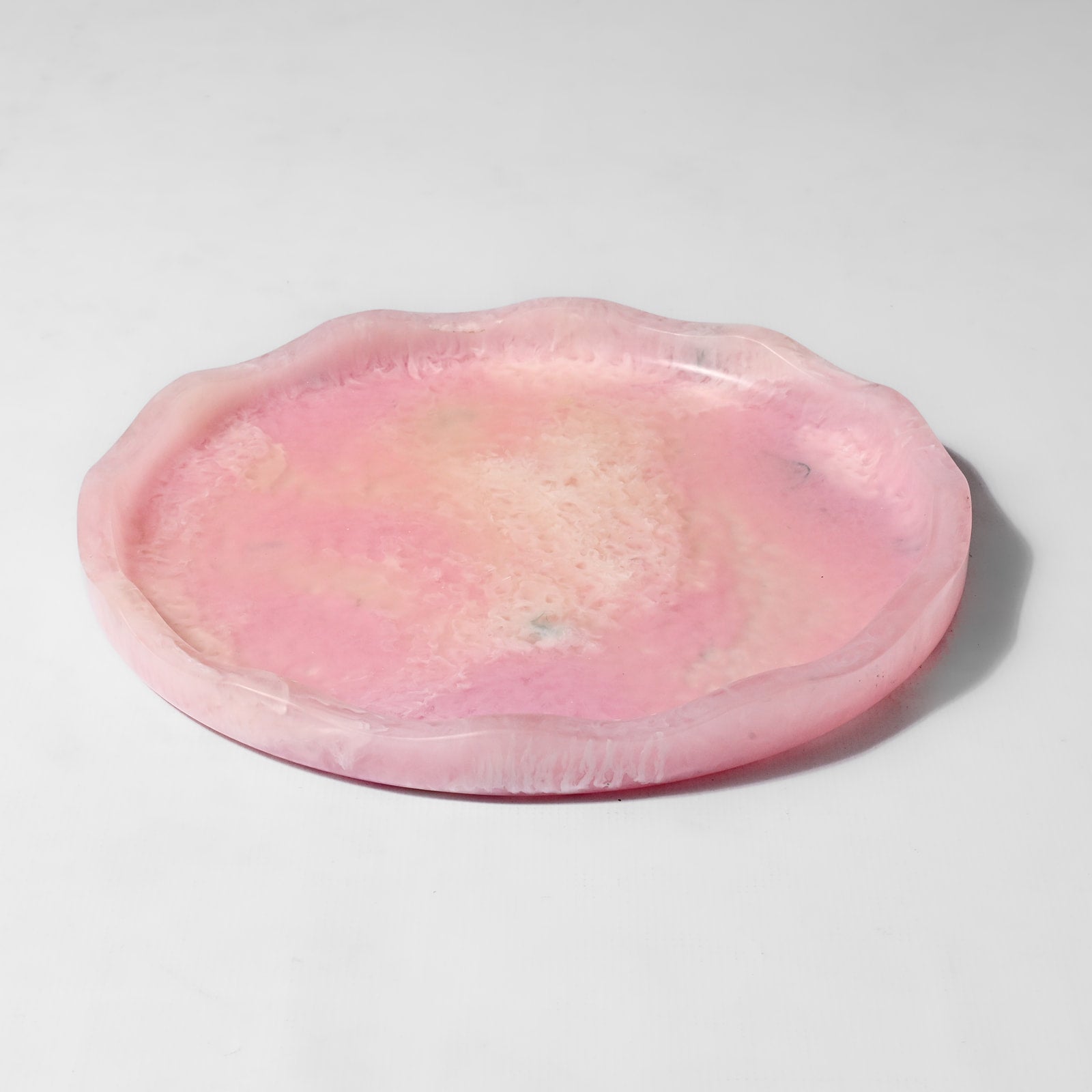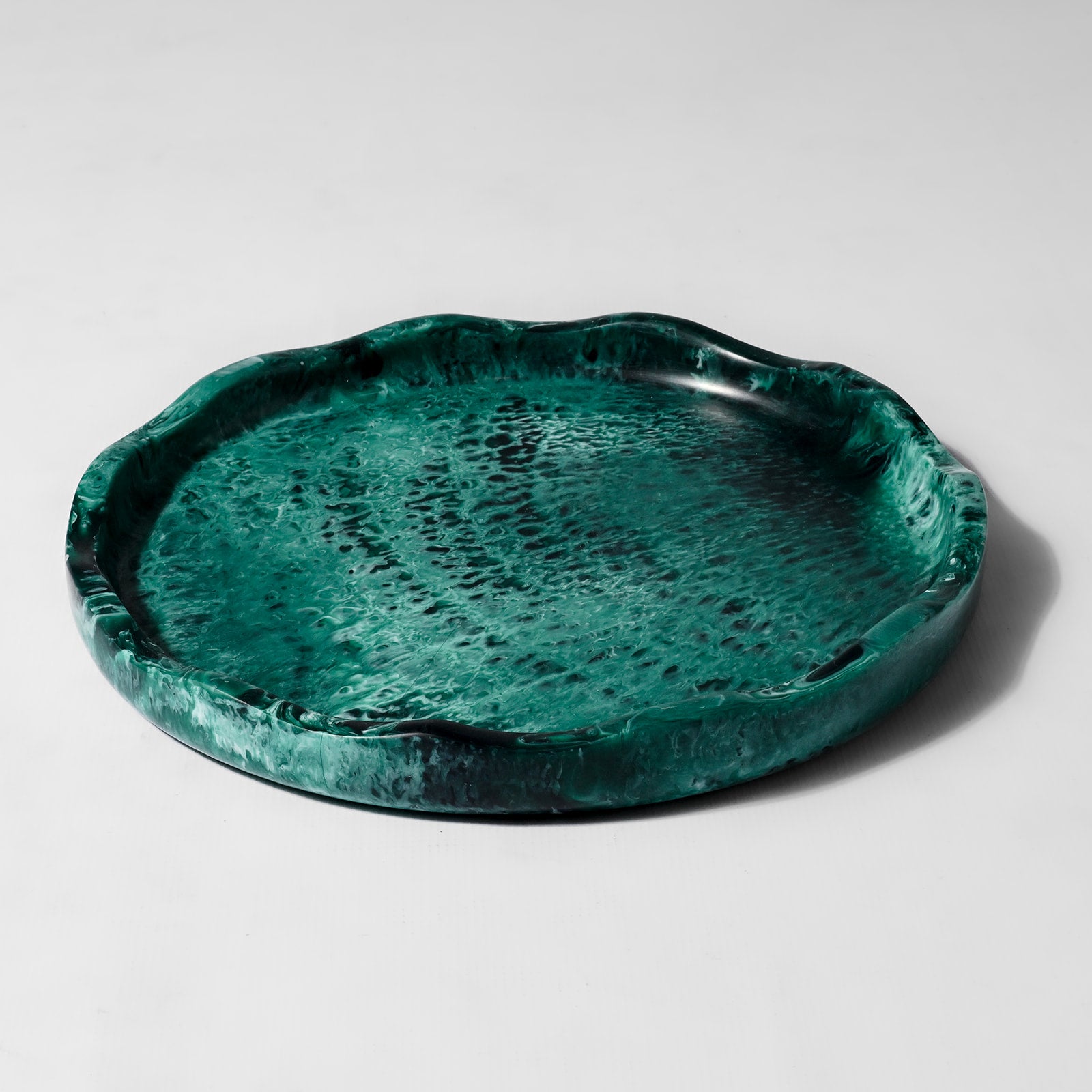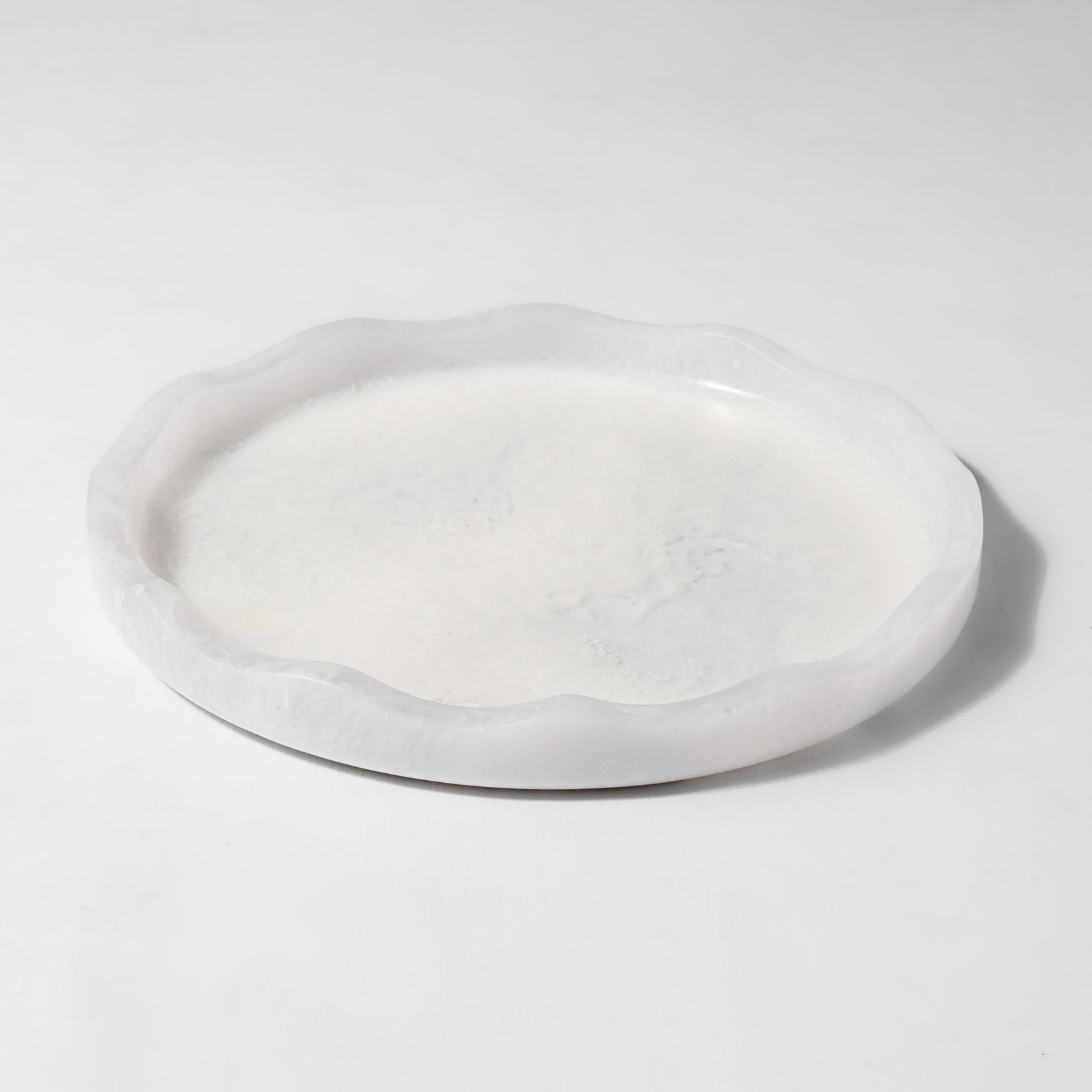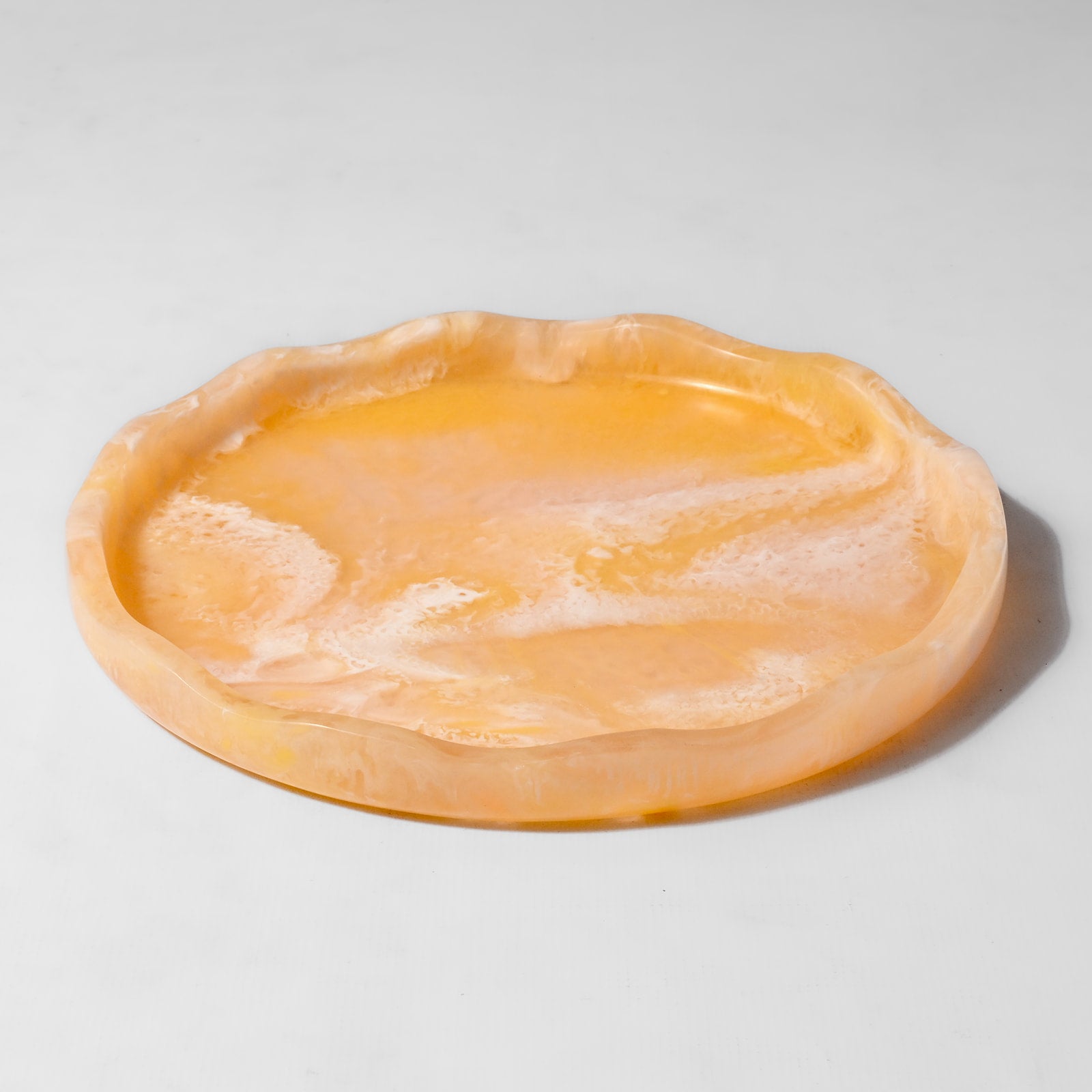 This flat tray has a smooth shape with gently rounded edges and a marbled resin finish that makes each one unique. Dishwasher safe and hot food safe, it’s perfect for serving appetizers, desserts, or as a stylish base for tabletop displays.