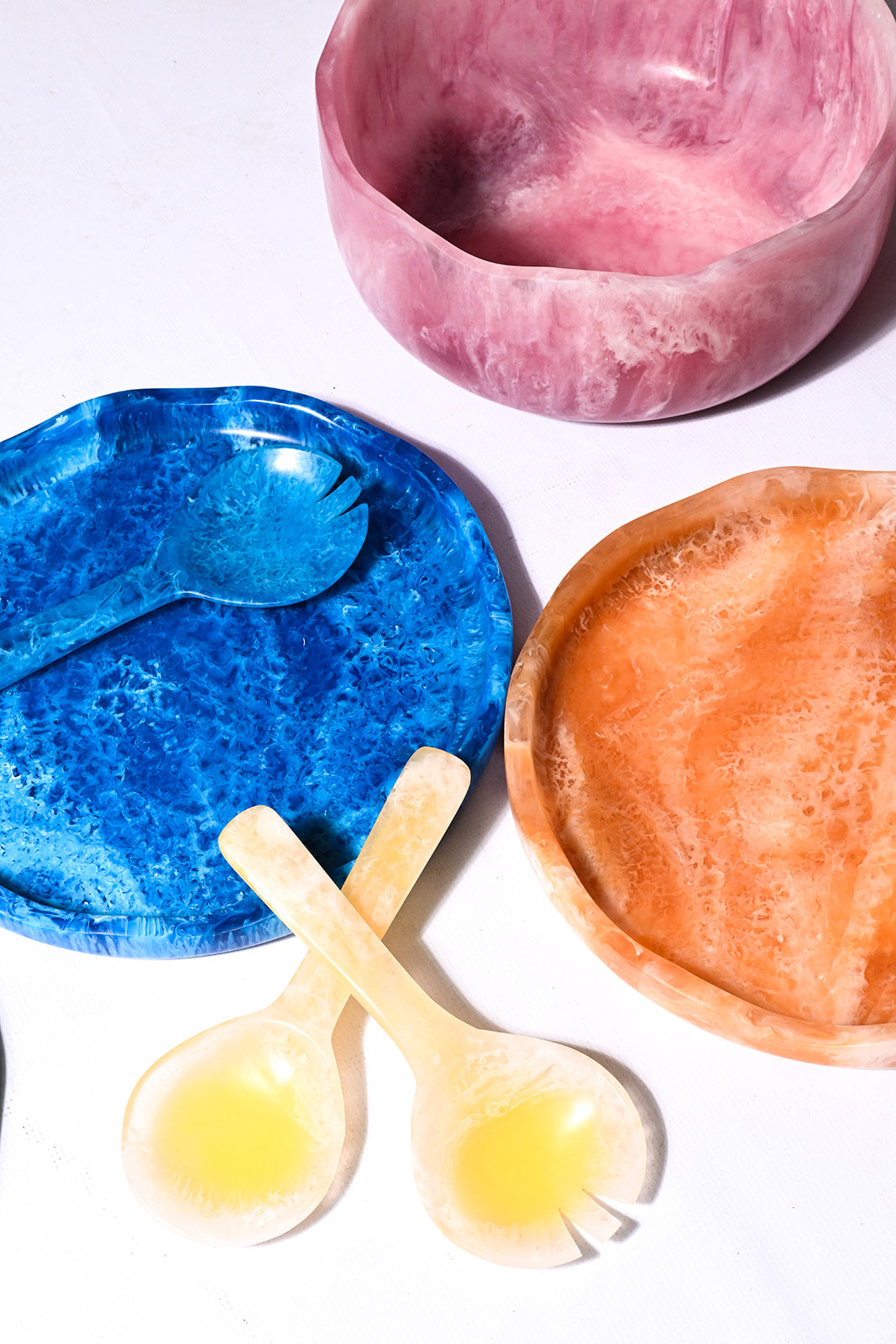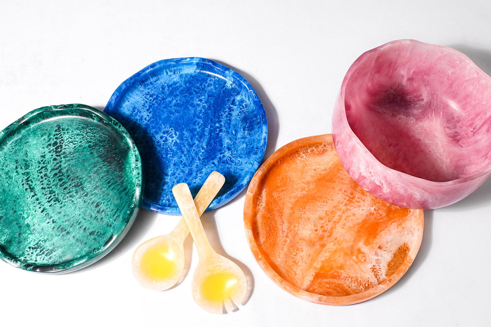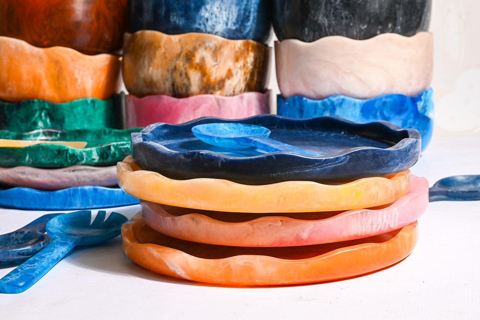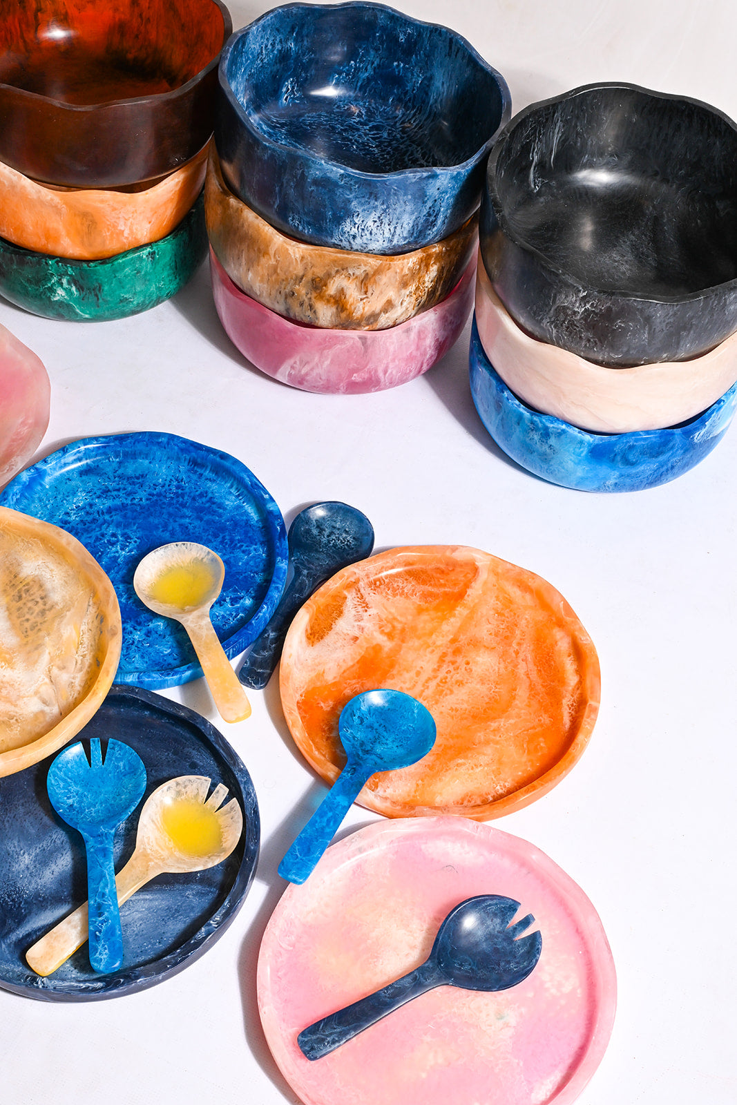 This flat tray has a smooth shape with gently rounded edges and a marbled resin finish that makes each one unique. Dishwasher safe and hot food safe, it’s perfect for serving appetizers, desserts, or as a stylish base for tabletop displays.