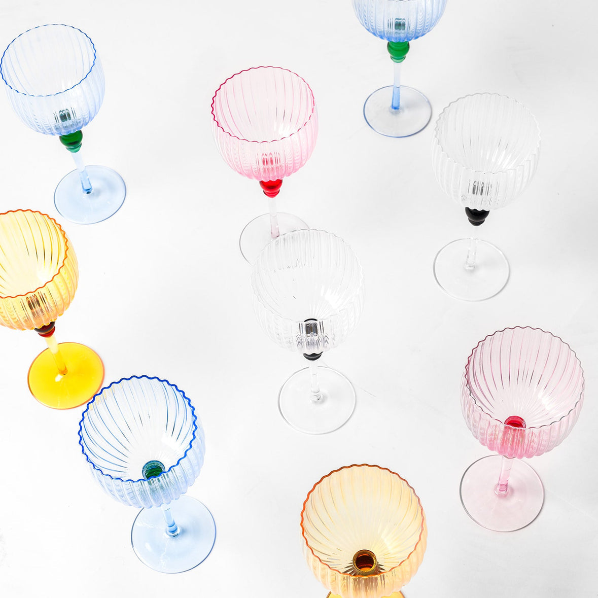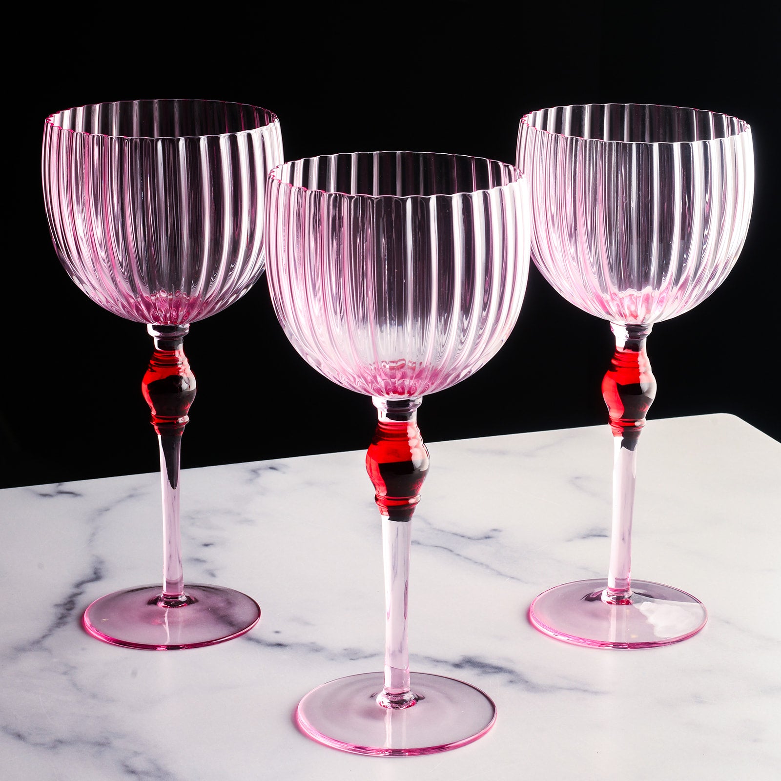 This gorgeous ribbed wine glass features a unique two tone design. Made from high quality glass, this collection adds elegance and charm to your table. Comes in a set of 4.
