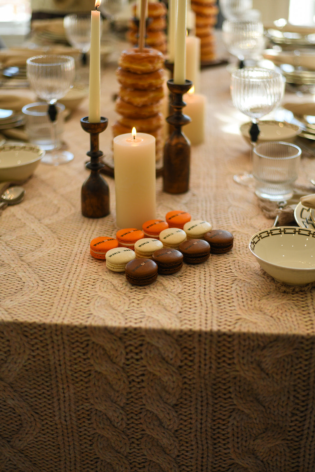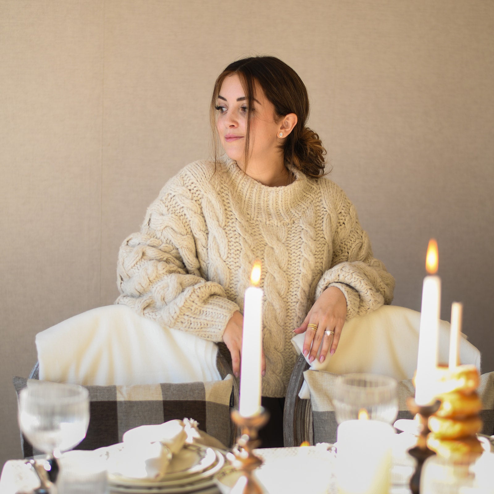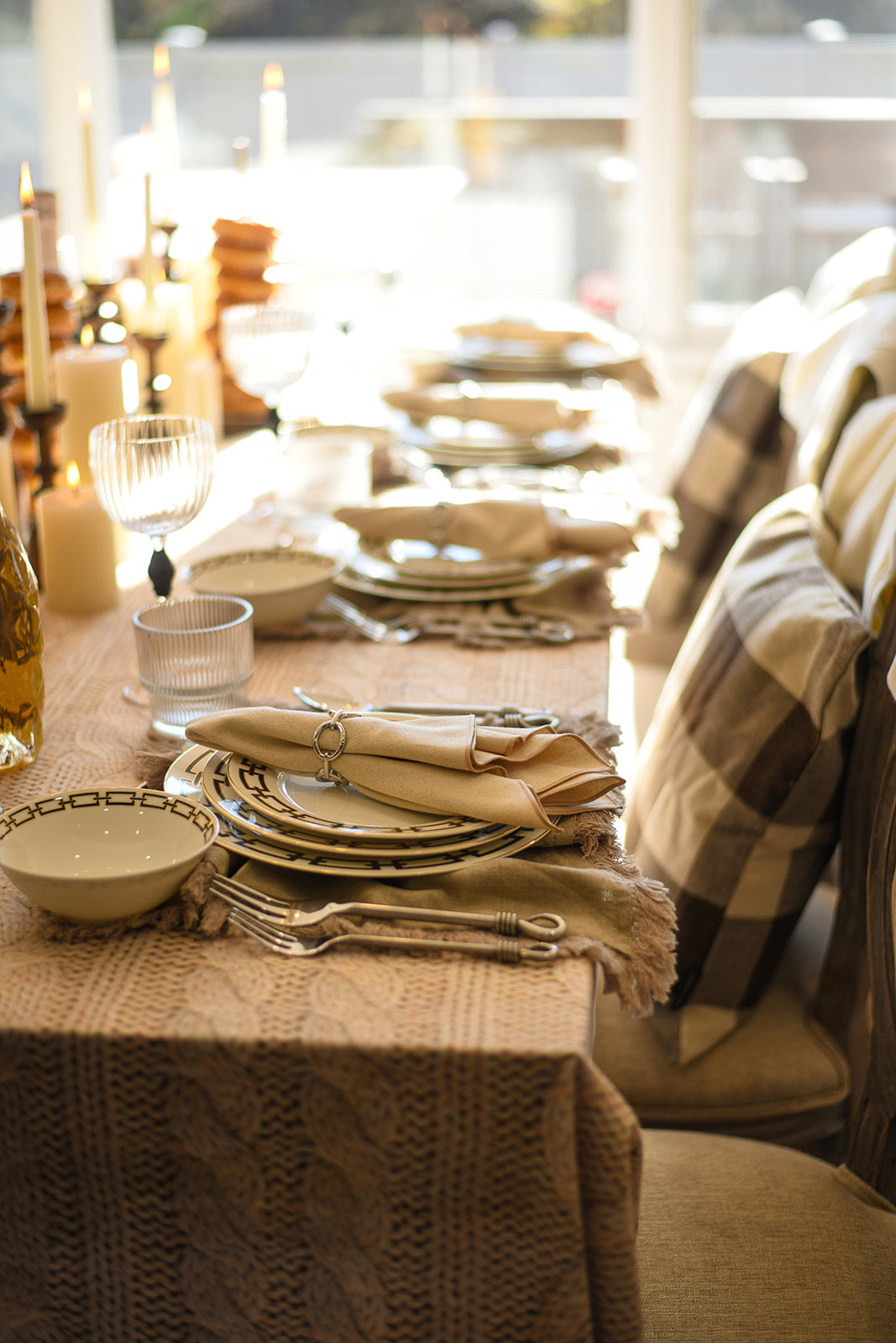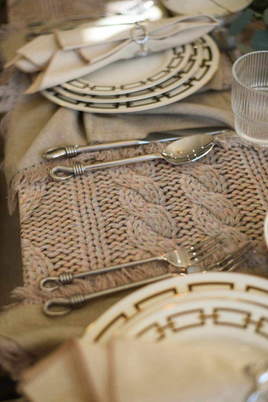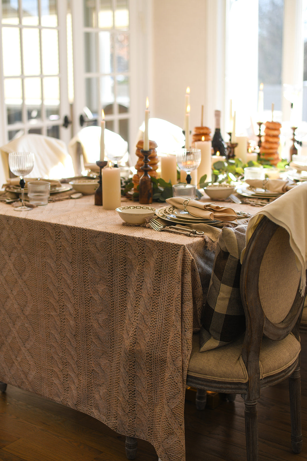 This tablecloth was inspired by Ralph Lauren and his chic and cosy aesthetic. While it looks like real cable knit it is actually a print on velvet fabric that is washable, stain proof and non iron! Elevate your home with this new collection!